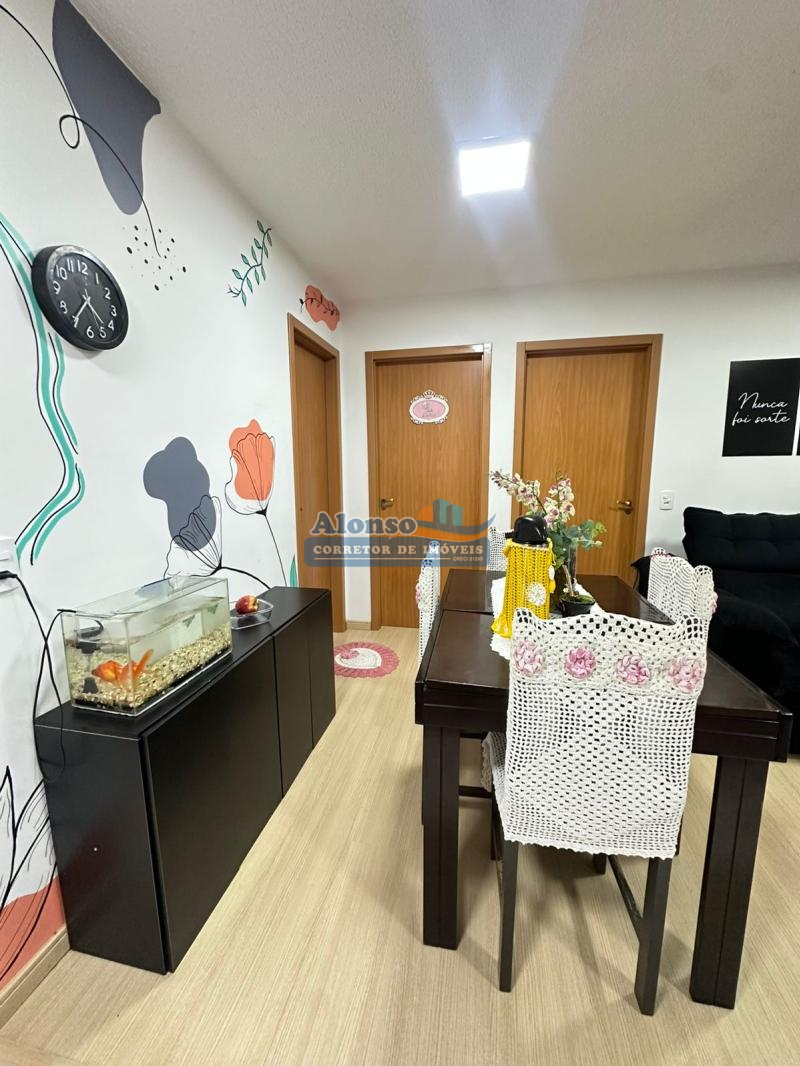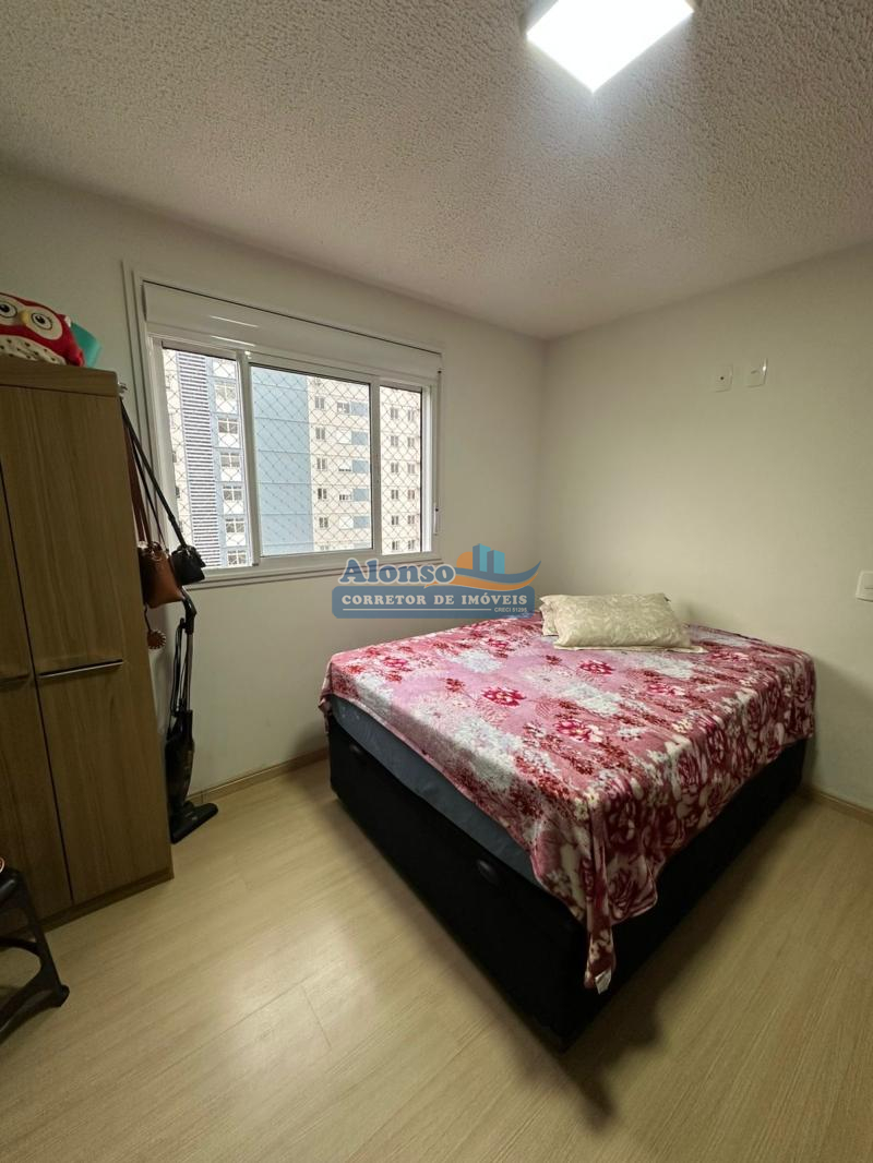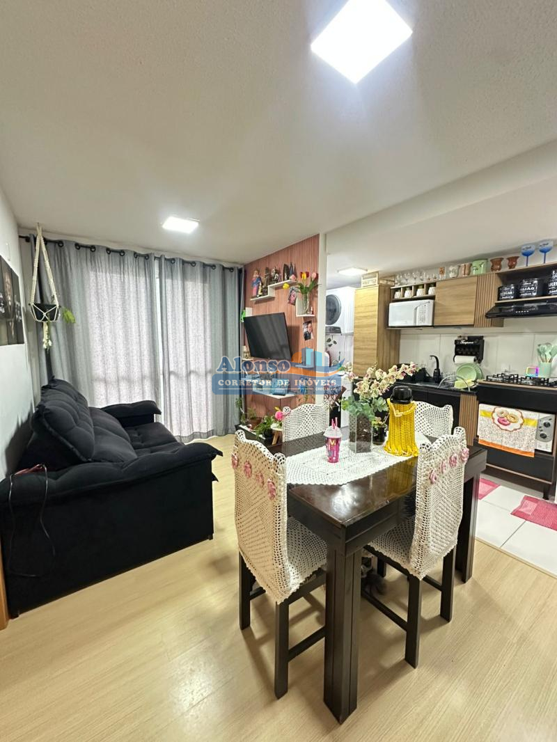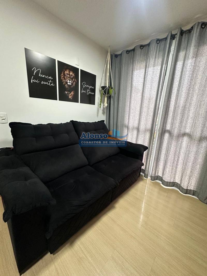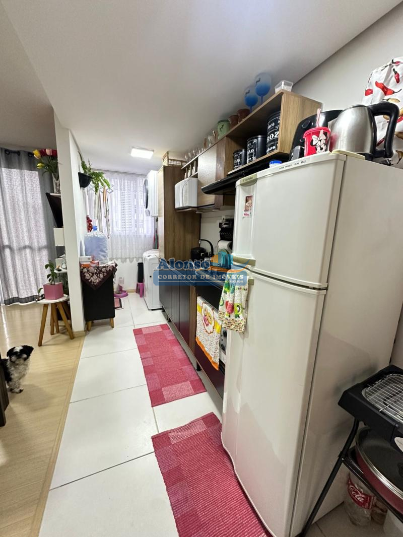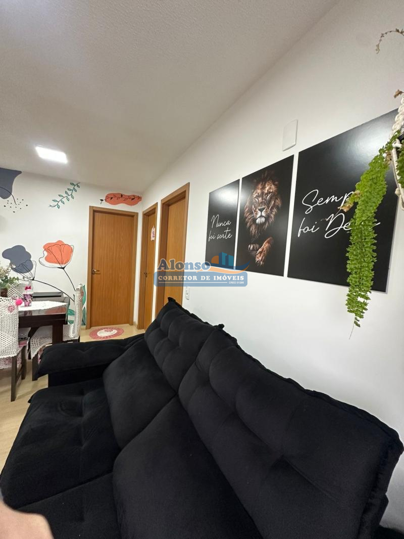 Imóvel com 02 dormitórios, banheiro social, cozinha, sala de estar com sacada, área de serviço, piso cerâmico e laminado e 01 vaga de garagem. Condomínio com ótima infraestrutura: jardim, salão de festas, dois elevadores, playground, portaria, alarme monitorado, portão e porteiro eletrônicos e hidrômetros individuais. Imóvel localizado no nono pavimento do prédio com orientação solar OESTE. Entrada parcelada direto com a proprietária!!!