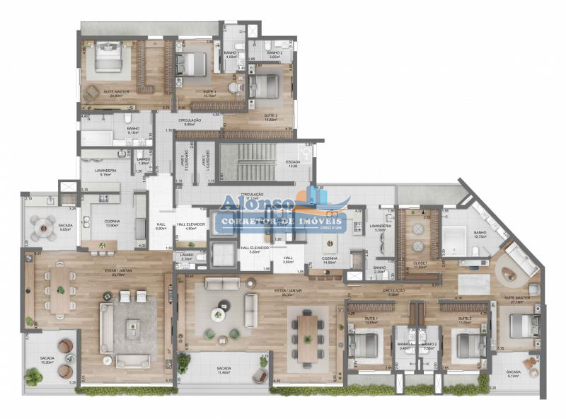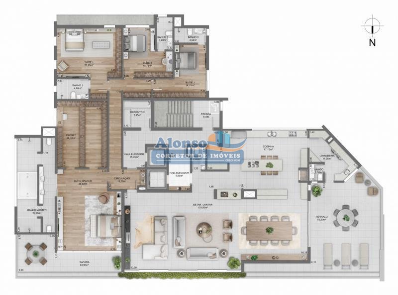 Este empreendimento sustentável conta com 3 suítes , sendo uma delas suíte master com closet, 3 vagas de garagem, 2 sacadas com vistas incríveis, floreiras, 2 lavabos , área de serviço, entrada de serviço, cozinha integrada com churrasqueira, espera para ar condicionado split, depósito individual na área de circulação e amplo living com sala de estar e jantar.