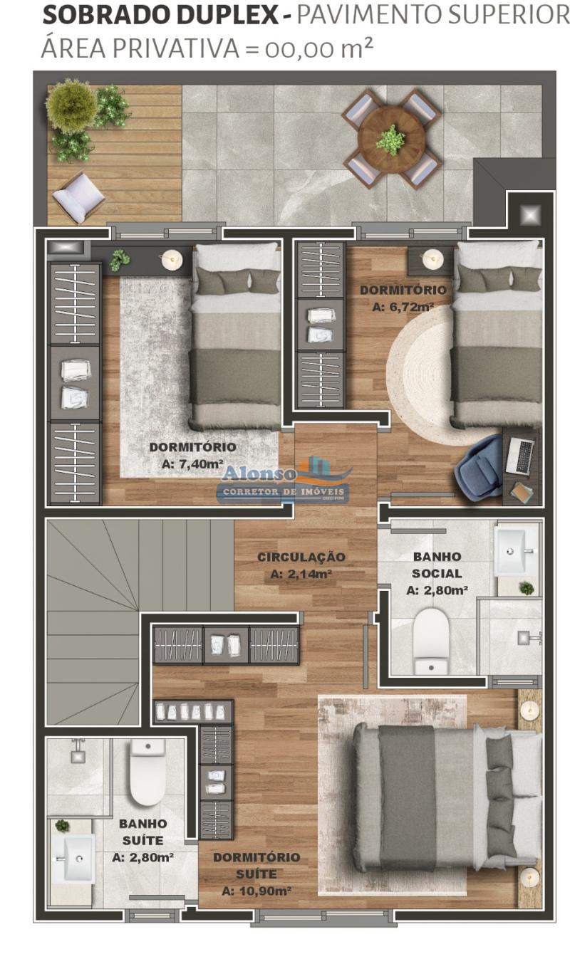 03 dormitórios sendo um suíte